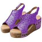 【並行輸入品】レディースサンダル 快適 ドレッシーウェッジヒール プラットフォーム サンダル オープントゥ アンクルストラップ 夏 キラキラ ラ