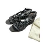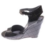 シャネル マトラッセ ココマーク ロゴプレート パテントレザー ウェッジソール ヒール ストラップ サンダル シューズ ブラック レディース