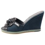 CHANEL シャネル カメリア ウェッジソール ヒール レザー キャンバス サンダル シューズ ブラック レディース G25948