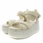 クロエ CHLOE 24SS Nama サンダル ウェッジソール 厚底 アンクルストラップ 37 24.0cm 白 ホワイト /AN24 レディース