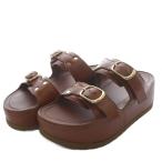 セリーヌ CELINE ポリー ウェッジミュール サンダル プラットフォーム トリオンフ カーフスキン 34 タン /YO25 レディース