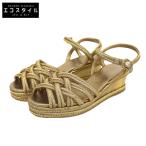CHANEL シャネル メタルココマーク 編み込み ウェッジソールサンダル エスパドリーユ レディース ゴールド 36C G28947