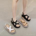 グラディエーターサンダル レディース 厚底 オープントゥ 7cmヒール ウェッジ おしゃれ 柔らかい 大きいサイズ ベルクロ 黒 滑り止め 軽量 耐磨耗性