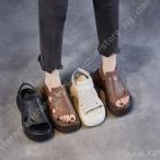 サンダル レディース 厚底サンダル カジュアル 本革 袴用 通学 通勤 歩きやすい 通気性 エスニック サマーブーツ オープントゥ ウェッジヒール ブーツサンダル