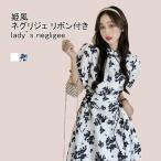 春 夏 チャイナワンピ レディース チャイナドレス 半袖 ミニ丈 民族風 パフスリーブ 紐付き スリット入り ハイウエスト 夏新作 可愛い