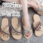 フラット サンダル エスニック風 靴 夏 歩きやすい レディース ボヘミアン風 靴 ビーチサンダル 南国風