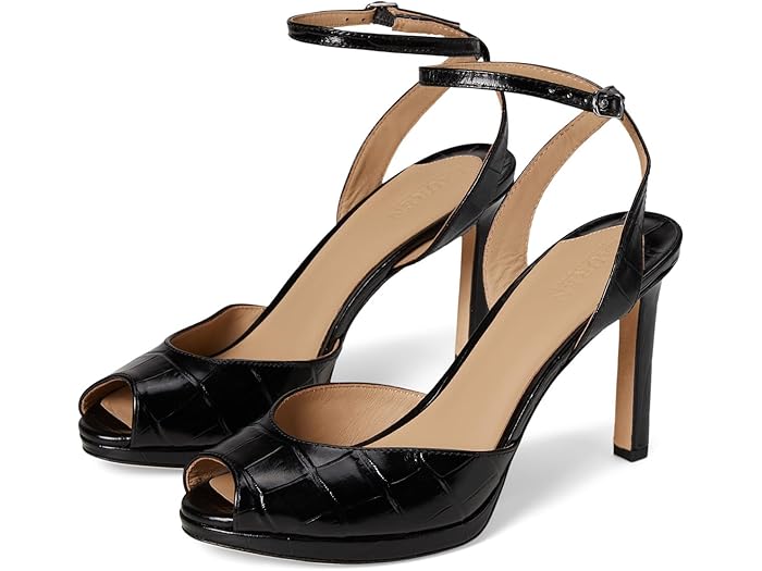 (取寄) ローレン ラルフローレン レディース カイラ クロコダイル-エンボスド レザー サンダル Lauren Ralph Lauren women Kyla Crocodile-Embossed Leather Sandals Black