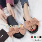 レディース シューズ サンダル リボン コンフォートサンダル リボンモチーフサンダル ビーチサンダル パステル スエードリボン アウトドア カジュアル 夏