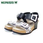 メフィスト MEPHISTO LISSIA(リシア)ブラック/プリント 5144387 天然皮革 ウェッジサンダル 中厚底 コンフォートサンダル (レディース) 正規品 快適靴