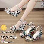 サンダル レディース オープントゥ パイソン柄 ハイヒール ウェッジソールサンダル 美脚 厚底 ストラップ 履きやすい 歩きやすい カジュアル 大人 おしゃれ 夏