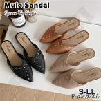 ミュール サンダル レディース ポインテッドトゥ ローヒール フラット リベット ぺたんこ パンプス サマー 夏 歩きやすい スリッパ 美脚