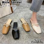 ミュール サンダル レディース ローヒール フラット ローファー スクエアトゥ ぺたんこ パール パンプス サマー 夏 歩きやすい スリッパ 美脚