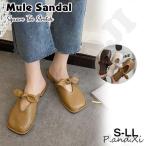 ミュール サンダル レディース ローヒール スクエアトゥ フラット リボン飾り ローファー ぺたんこ パンプス 夏 歩きやすい スリッパ 美脚
