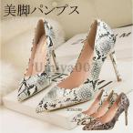 パンプス 痛くない 結婚式 レディース ポインテッドトゥパンプス ヒール10センチ パイソン柄 ウェディングシューズ ハイヒール ピンビール ブライダルシューズ