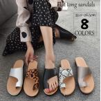 送料無料 トングサンダル フラットサンダル カットオフ レディース シューズ 靴 ぺたんこ 春夏 無地 ヒョウ柄 パイソン 親指ベルト カジュアル リゾート おしゃれ モード