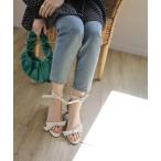 サンダル ダブルリボンストレートヒールストラップサンダル レディース