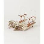 「EVOL」 リボンヒールサンダル M ゴールド レディース