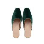 新品同様 PRADAプラダ 1XX715 トライアングルロゴプレート ベルベット スライドサンダル37 1/2 グリーン/ゴールド レディース