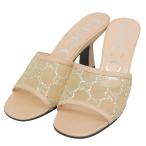 極美品▲GUCCI グッチ GGクリスタル ストーン ミッドヒール メッシュ ミュール レザーサンダル ベージュ 35 保存袋付き 伊製 レディース