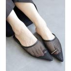 サンダル パンプス ローヒール レディース 2色 S〜LL ストラップ シアー フラット メッシュ ミュール ポインテッドトゥ 春夏