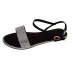 【並行輸入品】DKCHENH レディース カットアウト ラインストーン サンダル Tストラップ ゴム レースアップ ボヘミアン フラットサンダル