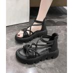 サンダル 厚底タンクソールの高密度クッションインソールレースアップサンダル レディース