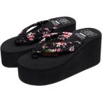 レディース スリッパ ビーチサンダル 厚底 ウェッジソール 総柄ストラップ 疲れない クッション性 カジュアル 8.5cmヒール 美脚