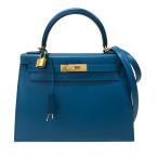 エルメス HERMES ケリー28 C刻 ブルーイズミール ゴールド金具 タデラクト ショルダーバッグ レディース 中古