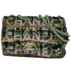 シャネル CHANEL ココマーク チェーン ショルダーバッグ ロゴ シングルフラップ ショルダーバッグ スパンコール グリーン マルチカラー レディース 中古