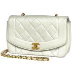 シャネル CHANEL ダイアナ マトラッセ シングルフラップ チェーン ショルダーバッグ ココマーク ショルダーバッグ レザー ホワイト レディース 中古