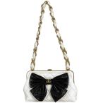 シャネル CHANEL ココマーク チェーン ショルダーバッグ リボン マトラッセ ショルダーバッグ パテントレザー ホワイト ブラック レディース 中古