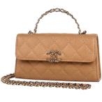 シャネル CHANEL ココマーク トップハンドル チェーン ショルダーバッグ マトラッセ ハンドバッグ ショルダーバッグ キャビアスキン ブラウン レディース 中古