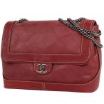 シャネル CHANEL ココマーク チェーン ショルダーバッグ パンチング トート Wチェーン ショルダーバッグ キャビアスキン レッド レディース 中古