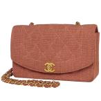 シャネル CHANEL ダイアナ マトラッセ シングルフラップ チェーン ココマーク ショルダーバッグ ファブリック サーモンピンク A01164 レディース 中古