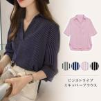 シャツ レディース 春 夏 春夏 ストライプ ブラウス 七分袖 白 ブラウスシャツ ストライプシャツ 七分袖シャツ ストライプ柄 白シャツ 七分