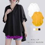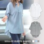 ブラウス レディース 春 夏 春夏 白 シャツ トップス スキッパー きれいめ スキッパーシャツ 半袖 チュニック ロールアップ 上品 ホワイト