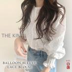 ブラウス レディース 春 夏 春夏 シャツ バルーンスリーブ 白 ホワイトシャツ ブラウスシャツ レース 長袖 フリル ゆったり スタンドカラー