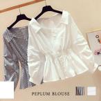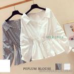 ブラウス レディース 春 夏 春夏 黒 白 長袖 チュニック 上品 ブラック ホワイト 長袖 シャツ トップス ペプラム きれいめ ペプラムシャツ