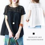 チュニック レディース 春 夏 春夏 ブラウス 白 黒 半袖 シャツ トップス チュニックシャツ ゆったり レース 花柄レース 切替