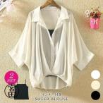 ブラウス レディース セット 春 夏 春夏 黒 白 シャツ トップス シースルー きれいめ 半袖 チュニック スキッパー ブラック ホワイト ベー