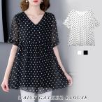 ブラウス レディース 春 夏 春夏 黒 白 ドット柄 ブラウスシャツ シフォン シャツ トップス 半袖 チュニック 水玉 きれいめ シースルー ブ