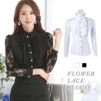 ブラウス レディース フリルシャツ 長袖 白 黒 レース袖 ブラウスシャツ フリル フォーマル シャツ ブラック ホワイト 長袖シャツ チュニッ