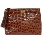 ジャンフランコフェレ GIANFRANCO FERRE クラッチバッグ セカンドバッグ フリンジ 型押し クロコダイル ゴールド ブラウン 茶 レディース