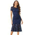 Allegra K レース ドレス 花柄 マーメイド 上品 半袖 ボディコン 結婚式 パーティー ワンピース レディース