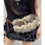 ベルト ハートバックルチェーン付きファーベルト レディース