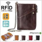 牛革 二つ折り財布 チェーン付き メンズ レディース スキミング防止 薄型 軽量 コンパクト 本革 財布 ギフト プレゼント 人気 クリスマス AMgrocery公式