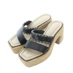 リウ Cork platform sandals コルク プラットフォーム サンダル M 23.5cm 黒 ブラック 厚底 チェーンベルト ■SH /RI ■OS レディース
