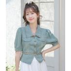 ブラウス シャツ ウエスト美人見えチェーンベルト付きパフ袖デニムブラウス レディース