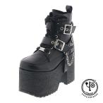 YOSUKE U.S.A ヨースケ 4460118 レディース 厚底 ブーツ レースアップ ジップアップ BL ブラック 12cmヒール 3E幅 取り外し可 チェーンベルト付き