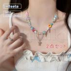 2点セット ネックレス レディース チョーカー 鎖骨チェーン ペンダント ビーズ ギャル 星 鮮やか カラフル ナチュラル ボヘミア ホリデー 夏 サマー